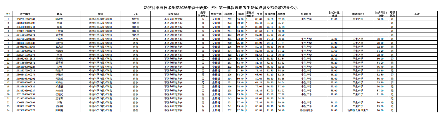 第一批次调剂考生复试成绩及拟录取结果公示(详见附件)。公示期:2026年4月15日—22日。