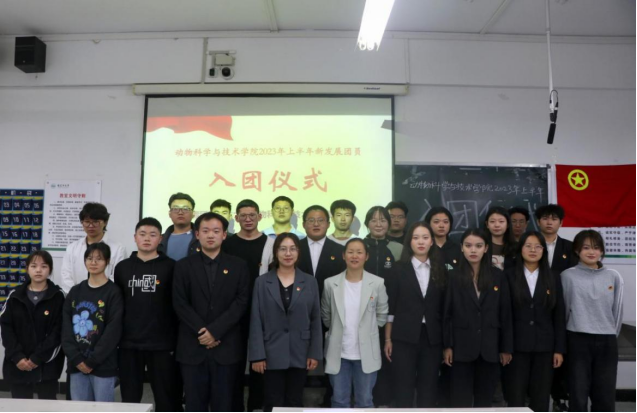 仪式伊始,全体起立,奏唱国歌,接着由芮雪老师宣读新团员名单,并由参会老师及老团员代表为新团员佩戴团徽,随后进行入团宣誓。动物科学2021级4班徐敬博同学作为老团员代表进行发言,他寄语新团员:“希望各位同学在今后要时刻牢记自己是一名共青团员,按照团员标准严格要求自己,更好地践行胡杨精神,努力做有理想、有抱负、有担当的新时代胡杨青年!”