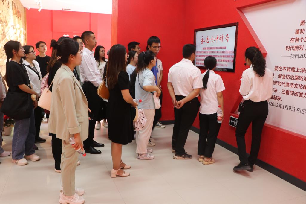 在讲解员的带领下,同志们先后参观了河涟沧浪、清波镜鉴、风沐初心三个展厅,学习了习近平总书记关于全面从严治党的重要论述、全面从严治党的百年历程和取得的成绩,了解了近年来查处的有关党风廉政建设的典型案例,对师市反腐败历程和取得的成果有了全面的了解。