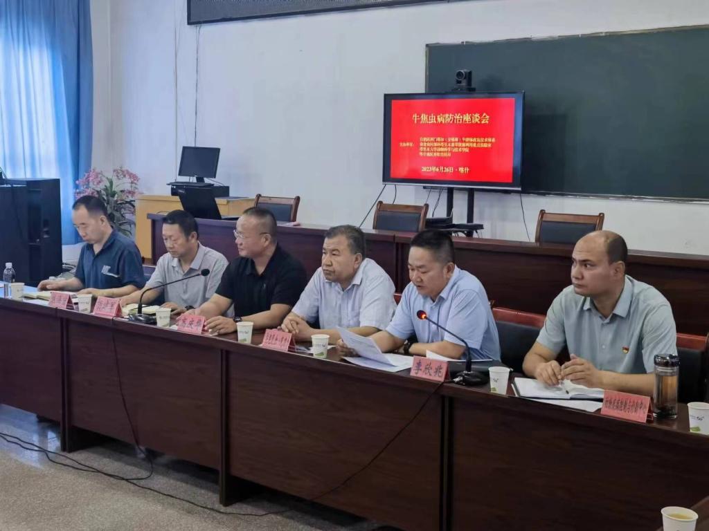 和喀什地区畜牧兽医局组织农业农村部环塔里木畜草资源利用重点实验、自治区西门塔尔牛(安格斯牛)群体改良技术体系专家团在喀什地区开展牛焦虫病的调研和焦虫病防控工作座谈会。