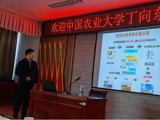 进行学术交流,为动科院相关专业师生作了《动物基因组选择》的学术报告。报告会由学院李有文副院长主持,120余名师生与会聆听。
