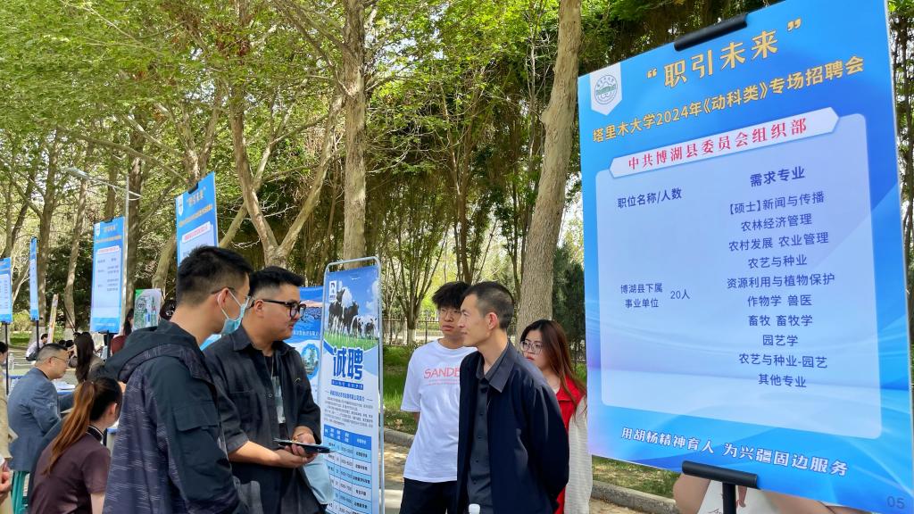 本次专场招聘会,有博湖县委员会组织部、现代牧业(昌吉)有限公司、新疆博润农牧有限公司等14家用人单位参加。提供了包括畜牧、兽医、饲料、农业、生物及综合行政等领域约375个岗位。学院2024届300多名毕业生到场求职。