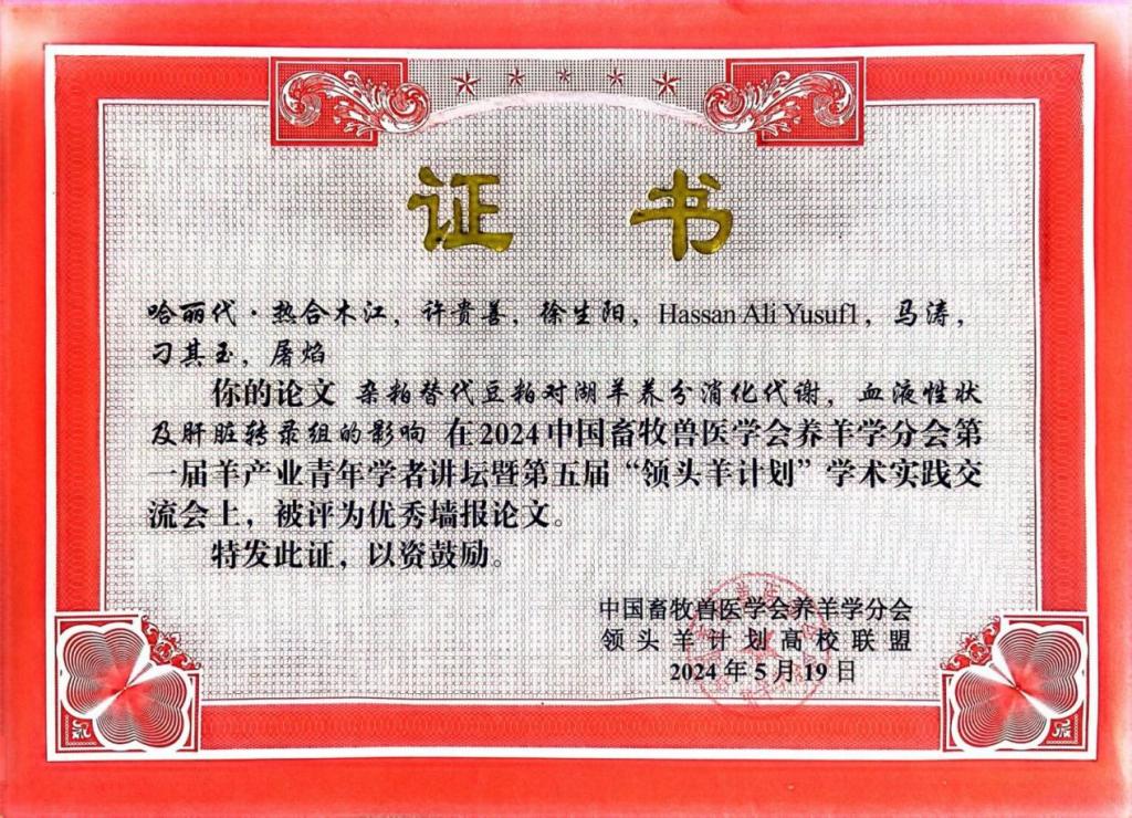 2024年新引进博士教师哈丽代·热合木江提交的会议论文被评为“优秀墙报论文”。
