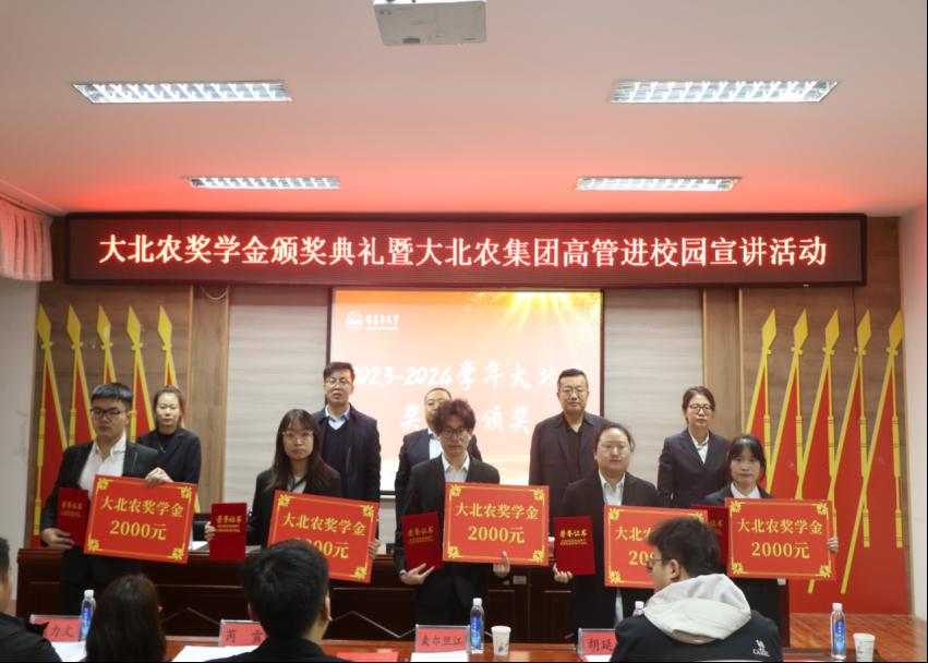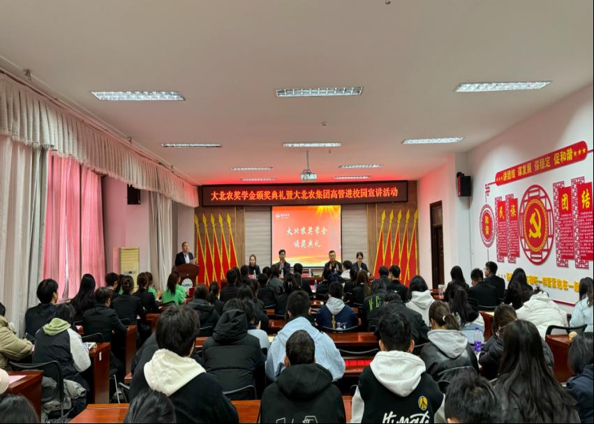 大北农奖学金颁奖典礼暨大北农集团高管进校园宣讲活动在动科楼318会议室开展。大北农集团西北区总裁王兴虎一行、学院党委副书记、纪委书记魏晓柳、学院辅导员、25名获奖学生和毕业班学生参加活动,王式琴主持会议。