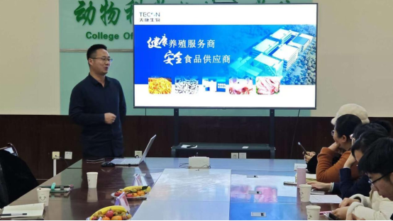 吉林冠界生物技术有限公司李俊辉主任详细介绍了公司的基本情况,并就疫苗生产工艺流程进行了细致交流,包括细胞和病毒的规模化培养、浓缩纯化以及乳化工艺的优化等内容。鼓励学生们积极投身到这片充满机遇和挑战的行业中,把握住职业发展的良好契机。(文/摄:张博文)