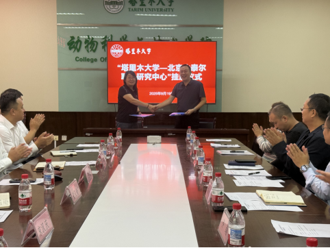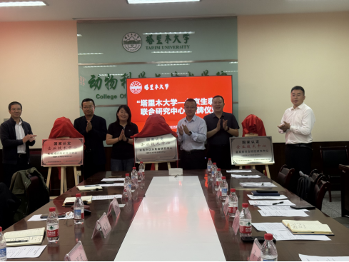 双方代表签署校企合作协议,并由双方领导共同为共建的三个研究中心揭牌。与会人员围绕新疆特色畜牧业发展、研究中心未来发展规划等展开深入研讨。