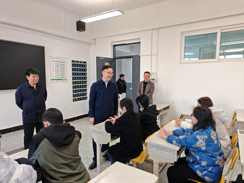,参加班级周日主题班会,调研学生返校及开学教育开展情况。校党委学生工作部部长谷建杰,院党委书记梁国杰、副书记时学梅、副院长齐萌一同参加。