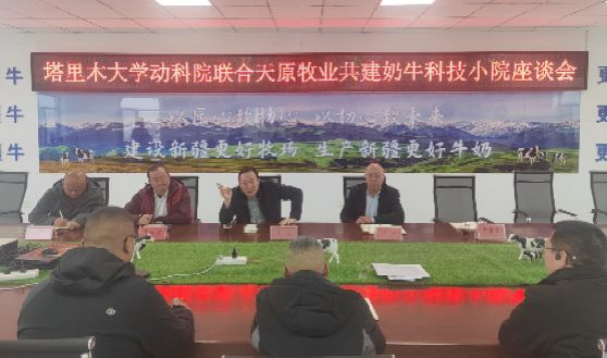 院长井波与奶产业技术体系岗位专家蒋涛教授及团队陶大勇教授、刘书东教授、研究生李睿岩一行前往阿克苏天原牧业有限公司,共同商讨“科技小院”的建设。2026年3月8日,Jvid