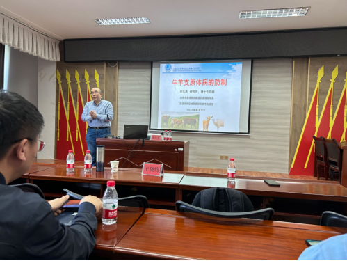辛九庆分享了自己在支原体研究方面的主要研究成果。他指出,支原体病作为一类重要的动物疫源性疾病,在牛羊中广泛存在,不仅表现出临床症状,而且会导致机体出现隐性感染,清除这类动物疫病需要开发有效的动物支原体疫苗,需要在座各位老师和同学的共同努力。