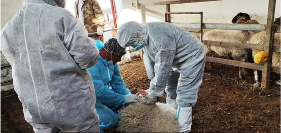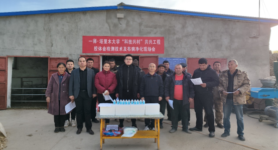 本次科技服务期间,团队一行采用线上和线下相结合的方式对柯坪县启浪乡牛羊支原体病和布鲁氏菌病胶体金检测技术进行了现场培训,并对博斯坦村示范点王孝和养殖户的全部羊只进行了现场采血,进一步开展布鲁氏菌病净化检测等相关工作。本次现场会开展期间,兵团第一师科技局局长艾尼瓦尔、Jvid