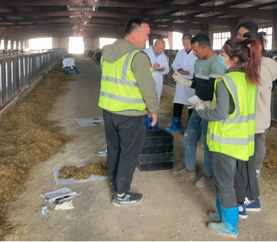 在调研过程中,蒋涛教授带领研究生对天润新农二场和三场高产、中产和低产牛全混合日粮的宾州筛数据进行分析,旨在帮助改善牛场的运营效率和管理水平,促进奶牛产业的可持续发展。