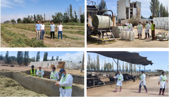 2024年6月4日,新疆奶产业技术体系专家王连群副教授,优质饲草产业技术体系副首席席琳乔教授,Jvid 刘利林教授、玄荣博士一行4人赴第一师五团新农牧业一牧场开展技术服务。