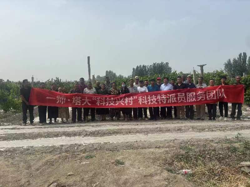 研究生艾买尔,来到阿克苏地区一师一团连队共建村开展科技服务活动。