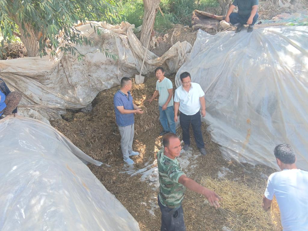 第五分队胡建军教授及成员,与六团农业发展服务中心副主任涂云锋、六团五连党支部书记、巴格其村技术员韩欣等前往温宿县巴格其村该养殖小区开展科技兴村服务活动。