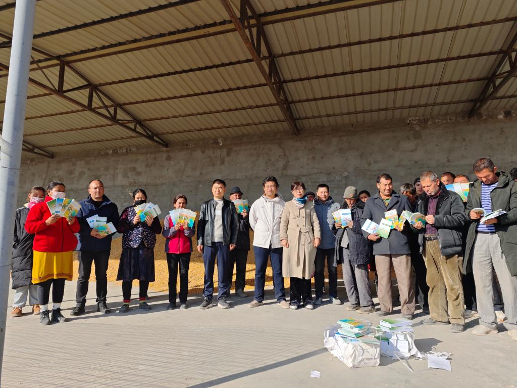 团队成员一行到萨依买里村进行了牛、羊等养殖知识培训,向村民发放了饲料、化肥、科技书籍等,并对明年培训基地建设做了规划(文/摄/高进东)