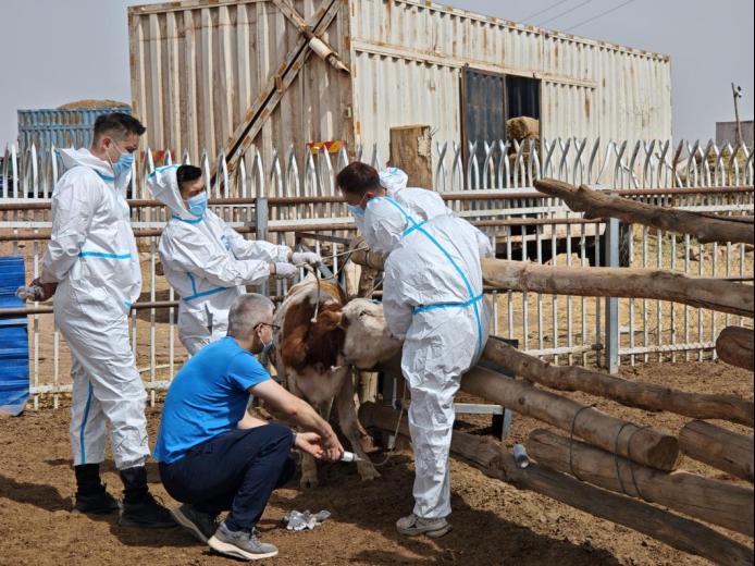 买买提·吐尼亚孜博士、赵凌博士和尚清华博士带领动物医学大四学生艾力·图尔荪、凯吾赛尔·奴拉合买提和阿力木·阿卜拉同学赴温宿县共青团镇萨叶科甫村开展肉牛疾病回访诊疗。这是该团队继上月首次现场取样后,针对当地西门塔尔肉牛健康问题的第二次精准技术服务。