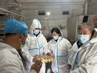 王惠娥教授联合中国农业大学曲鲁江教授、新疆农业大学李海英教授、石河子大学廖和荣教授,赴阿克苏地区拜城县黑英山乡拜城油鸡国家保种场开展拜城油鸡蛋用配套系研究进展交流及现场技术服务活动。此次活动旨在推动拜城油鸡蛋用配套系选育研究进一步深化,促进地方特色家禽品种的开发与利用。
