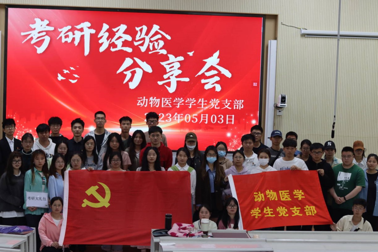 为考研学生提供考前冲刺期复习指导及应试技巧等明确考研目标。5月3日,动物医学学生党支部特邀请8位2019级考研上岸学生党员,作为嘉宾为大家分享备考经验和技巧,并解答了考研的相关问题。支部全体党员、部分积极分子等200余人参加。