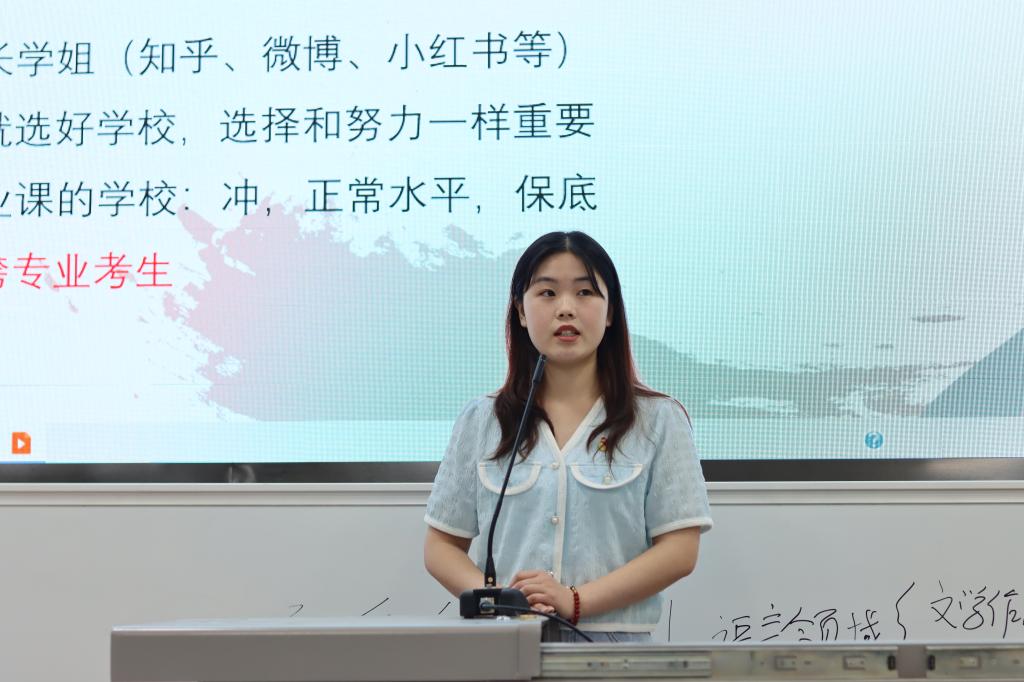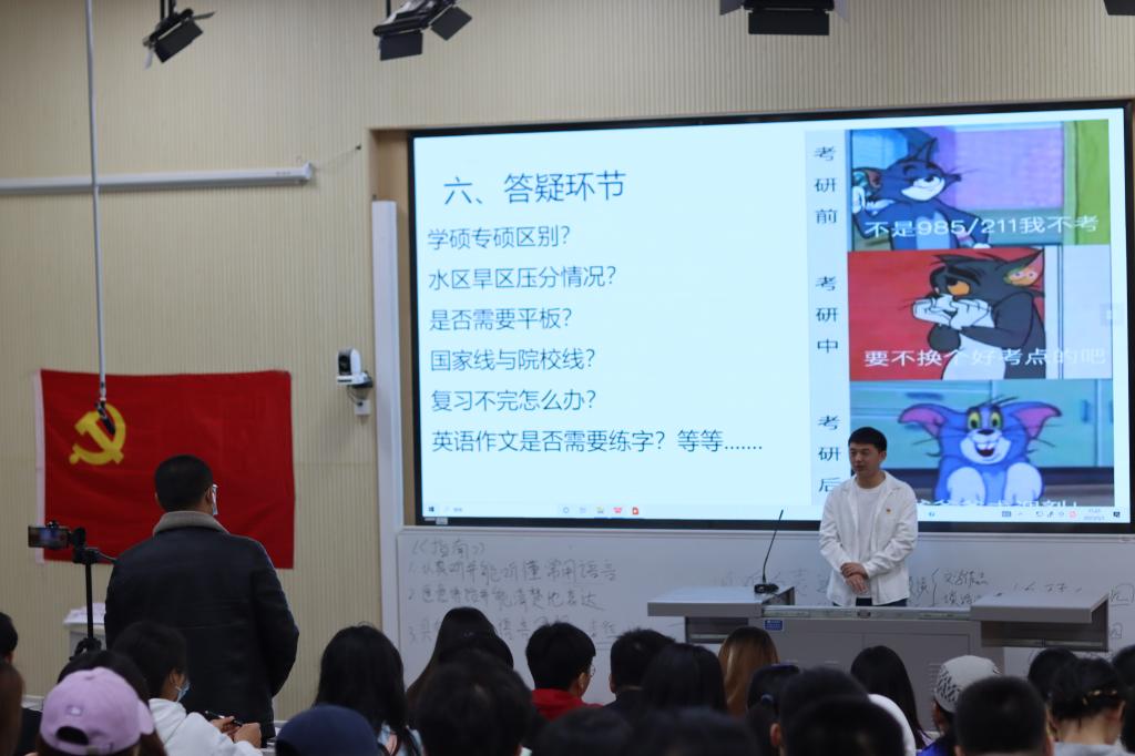 在分享会上,参与分享的几位同学从自身考研经历出发,围绕如何选取专业和院校、制定复习计划、调整心态以及复试中的注意事项等方面分享了亲身体验和感受。特别强调考研贵在坚持,要坚持自己的考研目标,坚持良好的考研心态,坚持完成考研全过程。