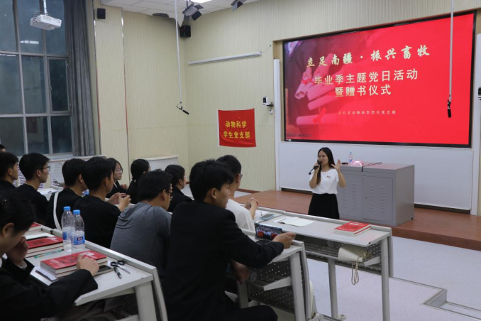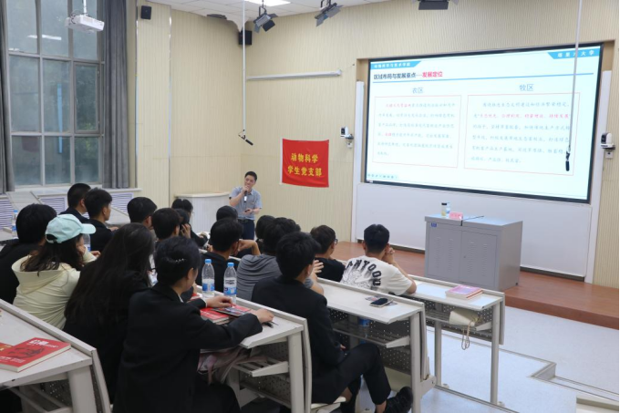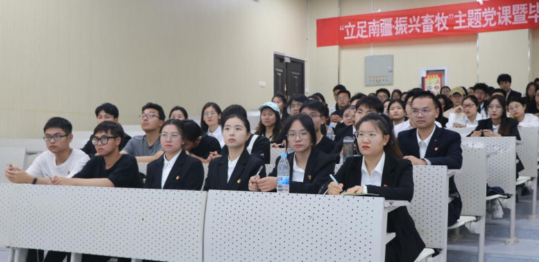 为进一步加强党员党性教育,强化党员思想自觉、政治自觉、行动自觉,引导毕业生党员坚定理想信念、继续发挥先锋模范作用、立足岗位做贡献,动科系动科学生党支部于6月6日晚上,在综合楼阶梯教室1开展“立足南疆·振兴畜牧”主题党课活动,此次党课由动科系党总支书记许贵善同志讲授,动科学生党支部全体党员同志参加。