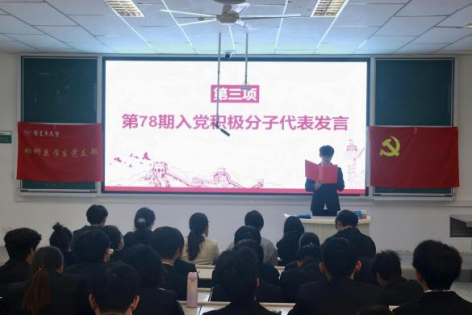 大会在庄严的国歌声中拉开序幕。会上,27名入党积极分子依次上台,分享了对党的深刻认识、真挚的入党动机及个人成长感悟。作为代表,动物科学2024级1班李路虎同学郑重承诺,未来将以更高标准严格要求自己,努力成为一名爱国爱疆、担当奉献的新时代“胡杨学子”。