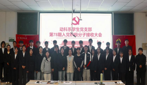 10月19日下午,动科系学生党支部于逸夫楼阶教5召开第78期入党积极分子接收大会。会议由张颇同志主持,党支部书记姚亚玲同志、副书记王式琴同志及支部全体党员、第78期入党积极分子参会。