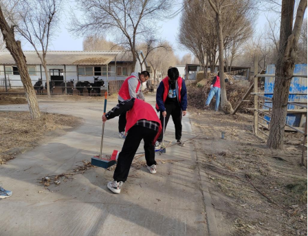 在志愿服务过程中,身穿红马甲的志愿者们活跃在农场里的各个角落,一边走路一边弯腰捡拾垃圾,一边清扫地面一边搬运垃圾,片刻之间,就让动物实验站焕然一新。