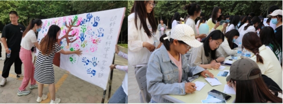 图书大楼前的拍照留念,考验合作精神的“两人三足”,不忘入党初心的“我与党旗合个影”,温暖欢快的“抱团游戏”,反应敏捷的“心口不一”……一个个卡点活动,让大家的情谊更加深厚,在坏解压力之余也让毕业生们更加深刻地感受到校园生活的美好。