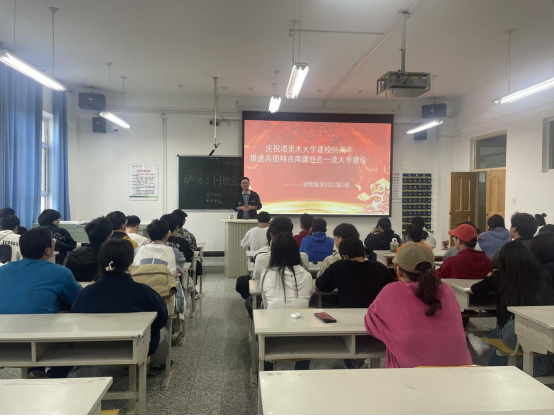班主任罗万和老师希望全体同学以此次团课活动为契机,从党的光辉历史中汲取奋力前行的磅礴力量,赓续红色血脉,从王震将军屯垦戍边的吃苦耐劳精神中学会坚守,从胡杨百年不倒倒的灵魂感受对边疆的热爱,从塔里木学65年的光辉成就中体会科技助农,科技固边,科技强国的光荣使命。