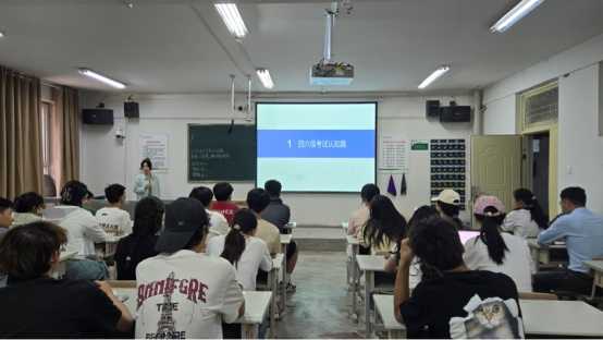 王静瑶同学以“过来人”的视角,用清晰的表格和生动的讲解对四六级考试的基本信息进行了系统梳理,帮助同学们构建起对四六级考试的整体认知框架。在听力备考、阅读理解、写作环节分享了自己的经验和做法。
